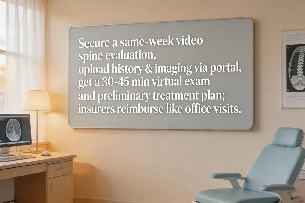Telemedicine now lets you secure a same‑week video visit for an initial spine evaluation, often within 24‑48 hours of your request. During the virtual consult the specialist can conduct functional tests—range‑of‑motion checks, resistance exercises, and gait observations—through video, gathering data comparable to an in‑person exam. A pre‑appointment online intake form lets you upload your medical history, prior imaging, and symptom details, cutting the video‑call time and accelerating the care pathway. Most insurers reimburse these spine telehealth visits at the same rate as office visits, removing a financial barrier to rapid scheduling.