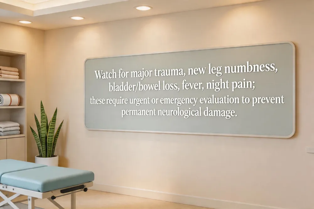 Signs of a serious spine issue – Severe worsening pain, sudden loss of bowel or bladder control, new numbness/weakness, fever/weight loss, or trauma‑related pain are red flags requiring prompt specialist evaluation.