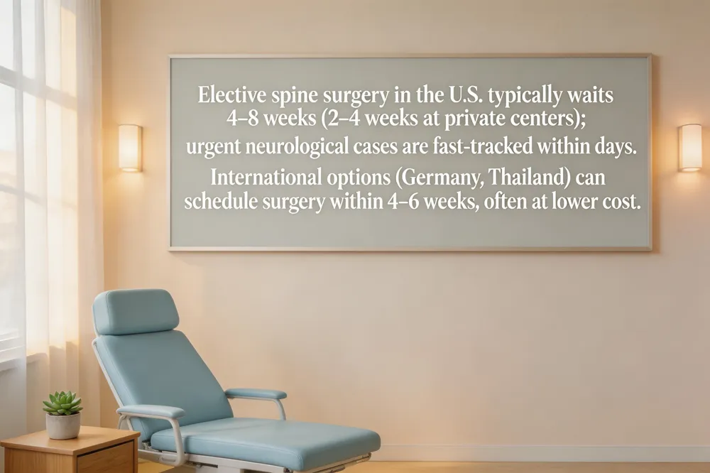 For patients who cannot tolerate a months‑long delay, traveling abroad offers a viable shortcut. German centers offer motion‑preserving technologies like Artificial Disc Replacement and Total Facet Joint Replacement provide motion‑preserving technologies such as artificial disc replacement and total facet joint replacement, often scheduling surgery within four to six weeks after clearance. Thailand treats over 2 million overseas patients annually with luxury‑like accommodations boasts packages that are 50‑70 % less expensive than U.S. care and can arrange elective spine procedures within four weeks of the initial request. Service includes full coordination of travel, accommodation, surgery, and postoperative rehabilitation for international patients allowing patients to bypass domestic waiting lists while receiving high‑quality, minimally invasive treatment.