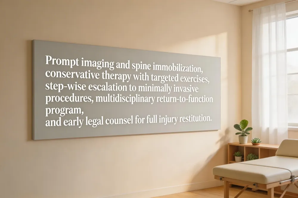 1. Immediate Evaluation and Stabilization Within minutes of a crash, emergency responders follow ATLS protocols: airway protection, breathing support, and immobilization of the spine with a rigid collar or board. A thorough neurologic exam checks for numbness, tingling, muscle weakness, or loss of bladder/bowel control. Imaging—X‑ray for bone alignment, CT for detailed fracture mapping, and MRI for soft‑tissue and cord assessment—identifies the injury’s extent. Prompt stabilization (bracing, traction, or surgical fixation) prevents secondary damage and sets the stage for recovery.