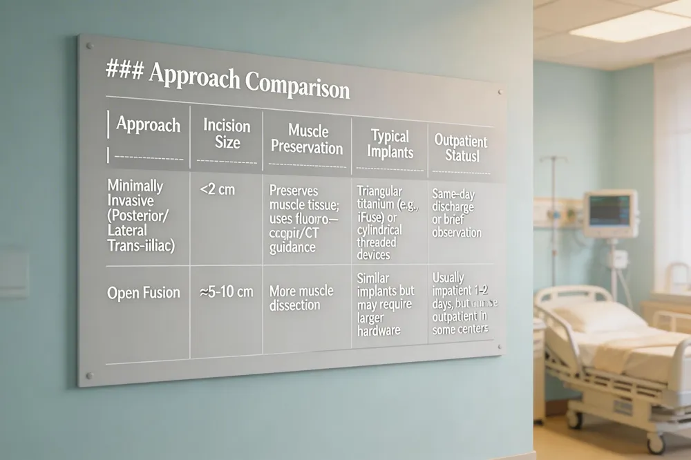- Although the incision is small, complications such as infection, bleeding, nerve irritation, or hardware malposition can still occur (rates reported as 1‑5% in large series of SI joint fusion, which is comparable to lumbar MISS).