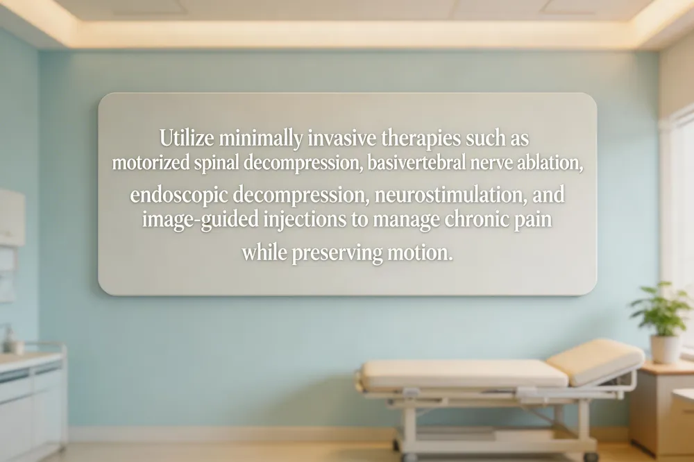 Modern spine care increasingly relies on minimally invasive and non‑invasive therapies that avoid the risks of open surgery. Motorized spinal decompression therapy uses a computer‑controlled traction table to gently stretch the spine, creating negative pressure that draws nutrients into intervertebral discs and promotes natural healing. This outpatient procedure is pain‑free, requires no anesthesia, and often improves mobility after a series of 20‑30 sessions.