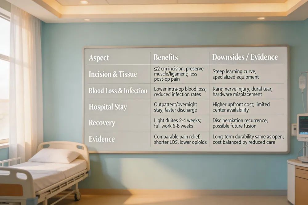 Evidence from PubMed – Recent systematic reviews and large cohort studies confirm that MISS provides pain relief and functional outcomes comparable to traditional open surgery, but with significantly lower intra‑operative blood loss, shorter hospital stays, and reduced postoperative infection rates. Cost‑effectiveness analyses show that the higher upfront technology expense is offset by decreased postoperative care and faster return to productivity.