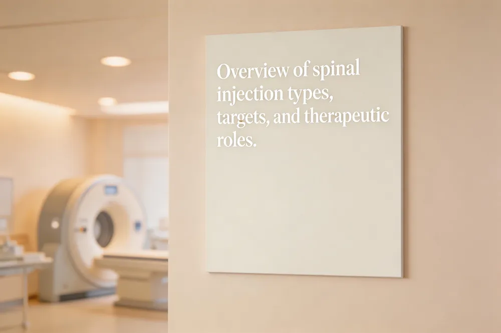 Spinal injections are a family of minimally invasive procedures used to diagnose and treat back‑related pain. Names of injections for back pain include epidural steroid injections (ESIs) that deliver corticosteroids and anesthetic directly into the epidural space, facet joint injections and medial‑branch nerve blocks for facet‑mediated pain, selective nerve‑root blocks, sacroiliac joint injections, discograms, and regenerative therapies such as platelet‑rich plasma (PRP) or bone‑marrow concentrate (BMC).