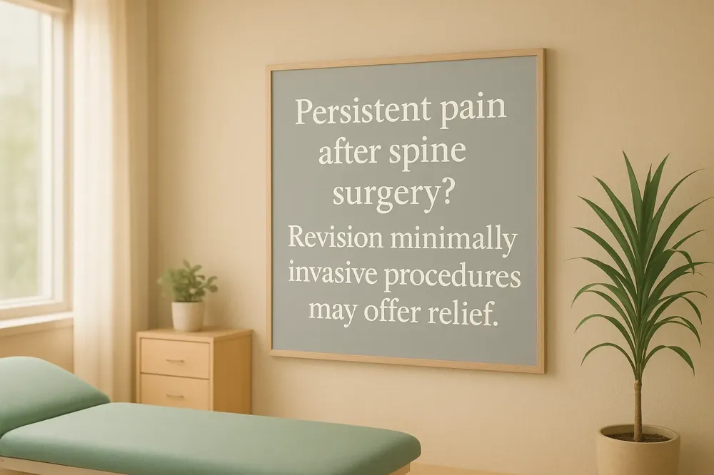 - Persistent or recurring symptoms after previous spine surgery indicate failed back surgery syndrome and potential need for revision minimally invasive procedures.