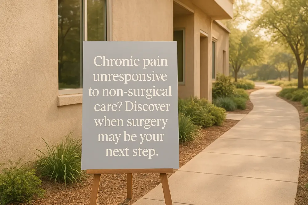 Conservative care is usually the first line of treatment for spinal conditions. However, if pain and functional limitations remain after a sufficient trial period—including rigorous physical therapy, appropriate medications, and image-guided injections—it suggests that the structural problem in the spine may require direct When to consider spine surgery.