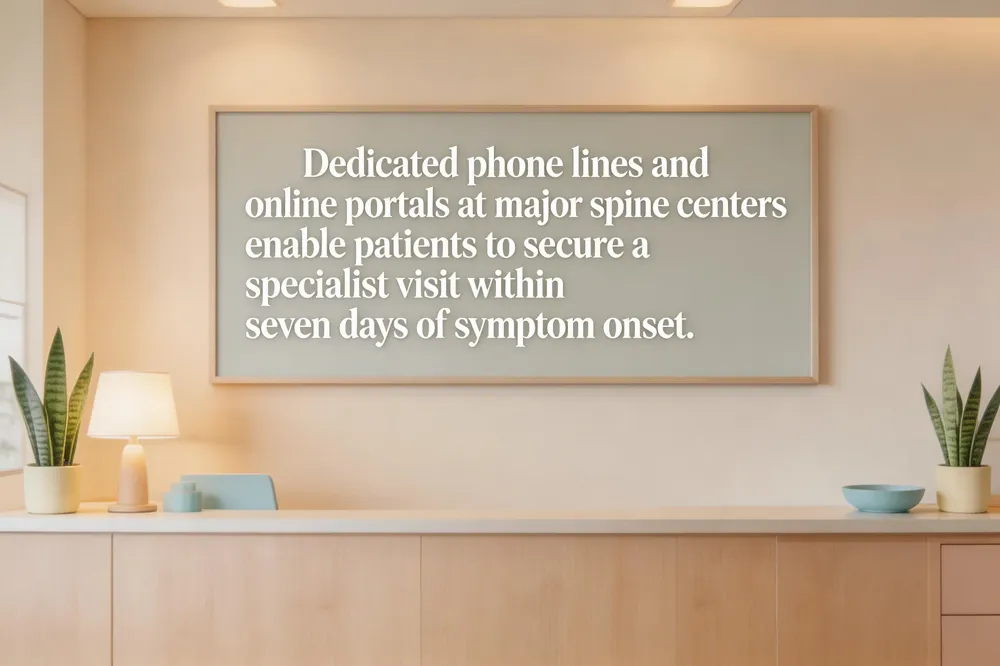 Spine centers across the United States have built streamlined pathways that let patients secure a specialist visit within seven days of symptom onset. The first step is usually a dedicated phone line—examples include UofL Health’s Brain & Spine Institute (502‑588‑2160), St. Luke’s Orthopedic Spine Institute (314‑205‑6060), and the Orthopedic Spine Institute of St. Louis (1‑888‑774‑6311). Many practices also offer online booking portals or patient‑portal forms, such as the UofL Health portal, Northwell Health’s 844‑88‑SPINE line, or the Kansas Joint & Spine Specialists "Request an Appointment" button, which capture basic demographic and symptom information instantly.