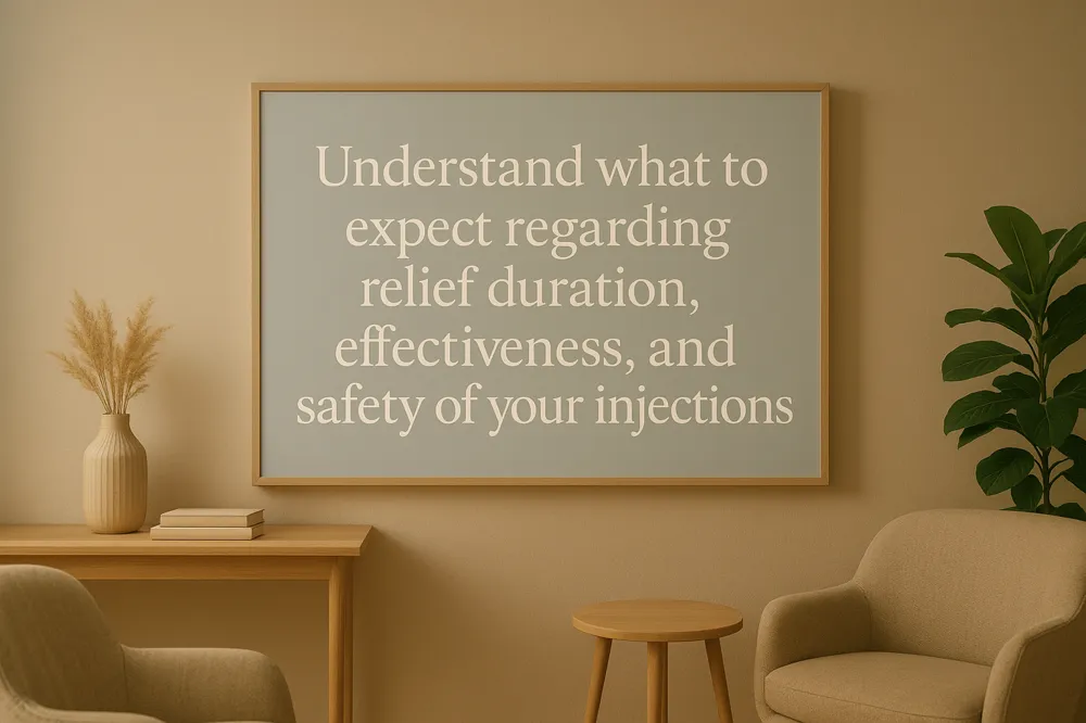 Epidural steroid injections generally provide pain relief that begins within 3 to 7 days, lasting several weeks to months. Facet joint injections often offer relief for about 3 to 6 months, with the option of radiofrequency neurotomy to extend effectiveness for up to a year.