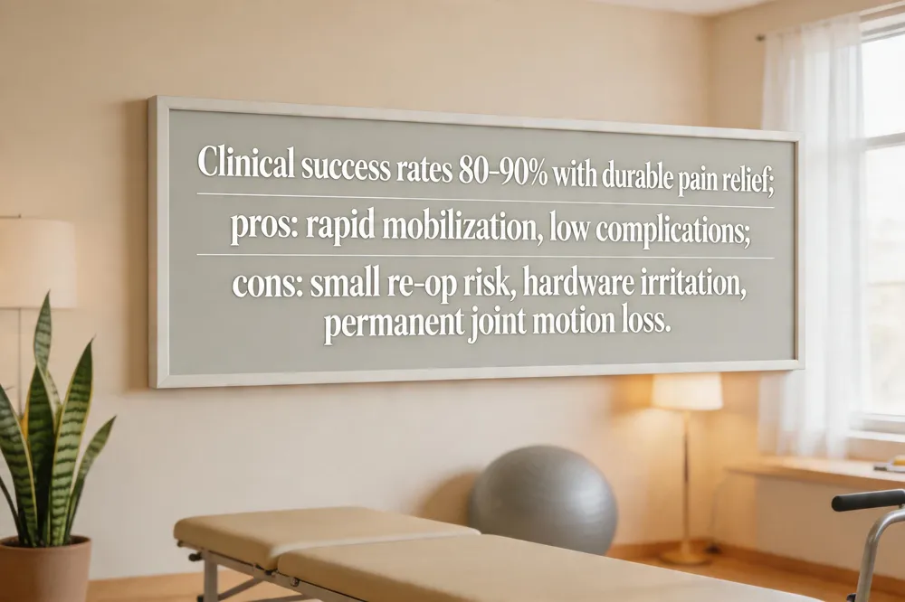 Pros include durable pain reduction, rapid mobilization (immediate weight‑bearing is allowed), low overall complication rates (<5 %), and a short hospital stay. Cons involve a small re‑operation risk (≈4‑5 % for screw loosening), hardware‑related irritation, permanent loss of SI‑joint motion, and the need for a structured rehabilitation program. Careful patient selection—confirming SI‑joint pain with diagnostic blocks, avoiding active smokers or severe osteoporosis, and ensuring adherence to postoperative protocols—optimizes the benefit‑risk balance.