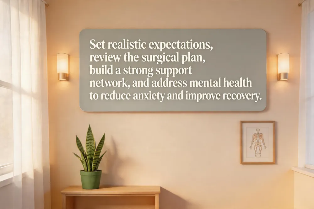 Pre‑operative anxiety triggers stress hormones that heighten pain perception, slow healing, and extend hospital stays. Studies show that patients who manage anxiety experience a 30% reduction in postoperative pain and a significantly shorter recovery timeline. Setting realistic expectations about pain relief, mobility gains, and rehabilitation duration prevents disappointment and keeps motivation high, which translates into adherence to therapy and functional gains. A strong support system—family, friends, or peer groups—provides emotional reassurance, practical assistance, and a safety net for tasks, lowering feelings of isolation. When patients know they have trusted help, they report less fear, lower cortisol levels, and a smoother transition from surgery to home recovery. Additionally, engaging in guided breathing or visualization exercises before the operation can further calm the nervous system and boost confidence for the day ahead.