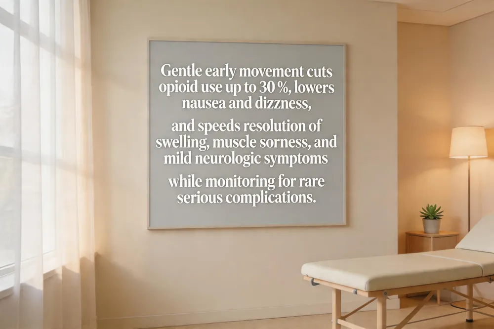 Early mobilization after minimally invasive spine surgery is a cornerstone of enhanced recovery. Gentle out‑of‑bed activity and sitting improves gait, keeps circulation up, lowers swelling, and cuts opioid needs by up to 30 % (see early mobilization reducing opioid consumption for details), which translates into less nausea and dizziness.