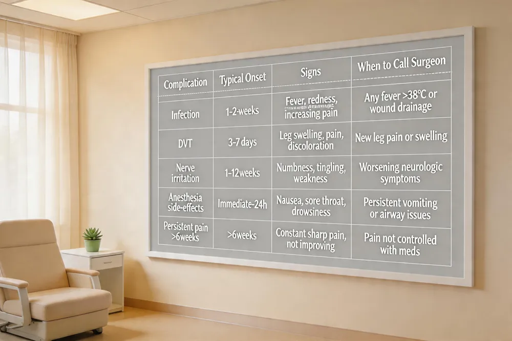 | Complication | Typical Onset | Signs | When to Call Surgeon |