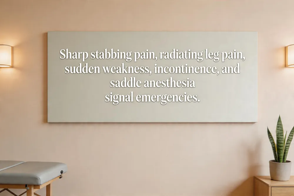 Back pain is common, but certain red‑flag signs signal a medical emergency that requires prompt evaluation. According to multiple clinical sources, five key emergency indicators are: