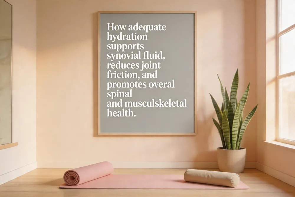 Yes. Adequate water intake helps maintain synovial fluid volume, which cushions and lubricates joints, including the spine, reducing friction and supporting smooth movement.