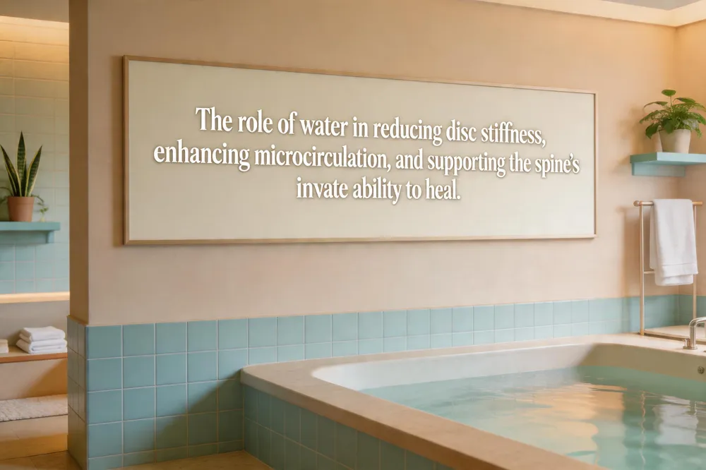 Intervertebral discs are 70‑90 % water; the water‑rich nucleus pulposus behaves like a gelatinous cushion. When the disc is well‑hydrated, the water content keeps the tissue supple, lowering compressive stiffness and allowing efficient load distribution (studies show hydrated discs are significantly less stiff in axial, flexion, and torsion tests)[https://pubmed.ncbi.nlm.nih.gov/12135546/]. Dehydration removes this turgor, making the disc stiffer, thinner, and more prone to bulging or herniation[https://www.njspineandortho.com/the-impact-of-hydration-on-spine-health/]. Boosting microcirculation to the avascular disc tissue relies on regular low‑impact aerobic movement (walking, swimming, yoga)[https://www.reviveinjury.com/the-surprising-role-of-hydration-in-spinal-disc-health/], spinal mobilization or gentle traction, heat therapy, and therapeutic massage. These actions pump fluid in and out of the disc, delivering oxygen, glucose, and waste removal while enhancing synovial fluid lubrication of facet joints[https://www.reviveinjury.com/the-surprising-role-of-hydration-in-spinal-disc-health/]. Natural regeneration of discs focuses on optimal hydration (half body‑weight in ounces of water daily, plus water‑rich foods)[https://www.reviveinjury.com/the-surprising-role-of-hydration-in-spinal-disc-health/], anti‑inflammatory nutrition, core‑strengthening exercises, proper posture, and adequate sleep when discs re‑hydrate. Combined with chiropractic adjustments that restore motion[https://cospineandjoint.com/hydration-important-spinal-health/], these strategies support nutrient diffusion and may slow degeneration without invasive procedures.