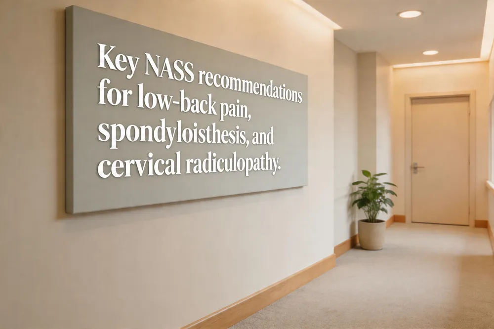 The North American Spine Society recommends a stepwise, evidence‑based pathway that begins with at least 6–12 weeks of non‑operative care—patient education, activity modification, structured physical therapy, and appropriate analgesics (e.g., NSAIDs). Red‑flag symptoms prompt early imaging, but routine MRI/CT is reserved for when clinical findings suggest nerve compression or instability. Surgery is considered only after failure of conservative management, with shared decision‑making and a preference for minimally invasive techniques when anatomy permits.