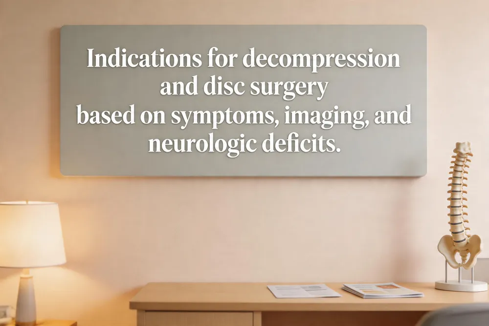 Indications for decompression at L4‑L5 When a patient experiences persistent radiculopathy or neurogenic claudication that limits walking distance, daily activities, or quality of life, and imaging (MRI/CT) confirms a focal stenosis at L4‑L5, decompression is strongly considered. Red‑flag signs—progressive leg weakness, foot drop, loss of sensation, or bladder/bowel dysfunction—prompt earlier surgical evaluation.